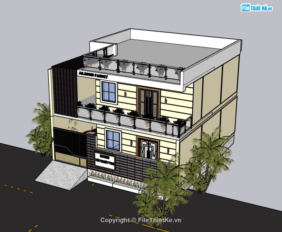 Mời mọi người cùng tham khảo mẫu biệt thự 2 tầng mình mới dựng xong trên phần mềm sketchup rất chi tiết, model dựng theo ý tưởng của mình, mọi người có thể dùng để tham khảo, phát triển thêm.
