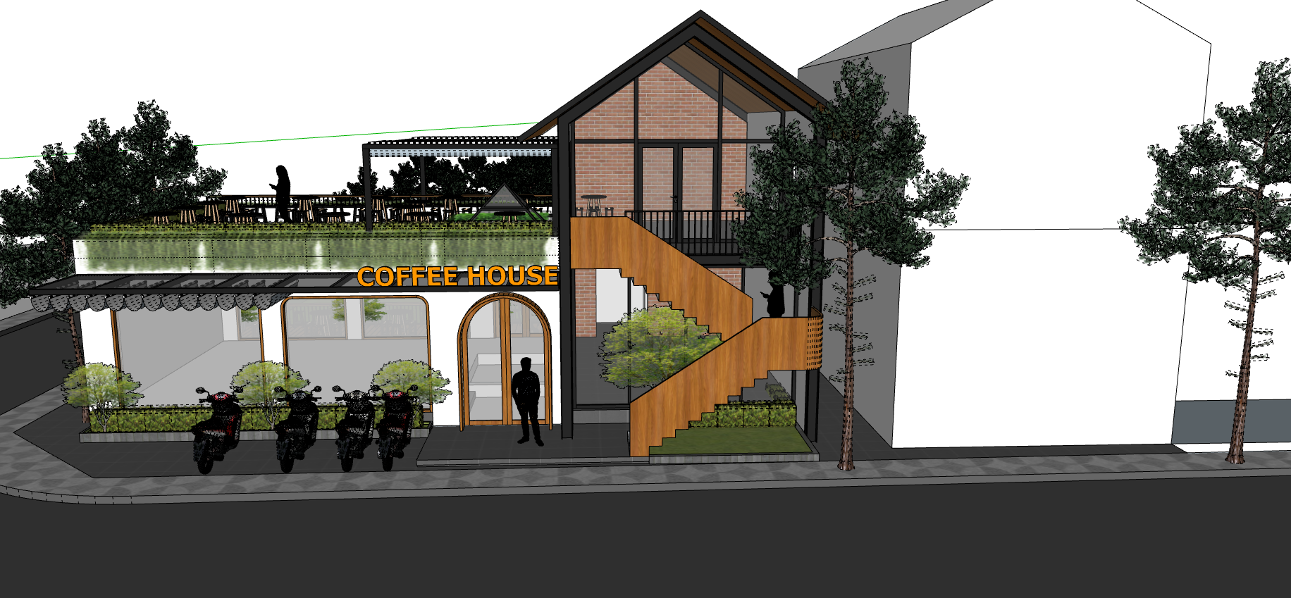 Với kinh nghiệm rất nhiều năm làm việc với phần mềm sketchup, hôm nay xin gửi tới các bạn kiến trúc sư mẫu bao cảnh 3dsu quán coffe house của mình. Model mẫu giúp bạn có thêm mẫu phát thảo và thể hiện ý tưởng của mình